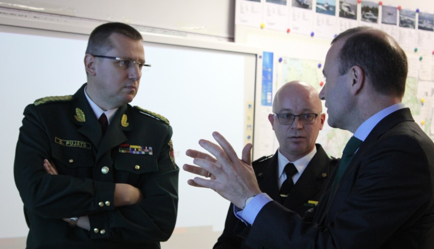 The Chief of the State Border Guard presented to Mr. M.Webber the National Coordination Centre of the Operational Management Board, its tasks, demonstrated the European Border Surveillance System (EUROSUR), the border surveillance technical means - the presence detection systems and the border surveillance management system; as well as told about the State Border Guard activities and participation in Joint Operations coordinated by the European Agency FRONTEX.