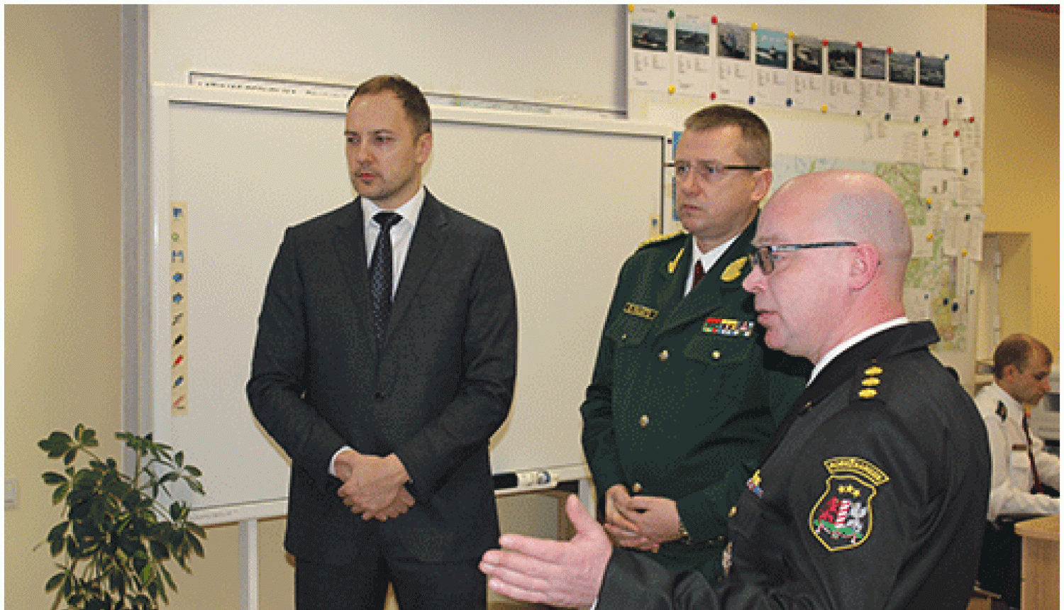 The Border Guards brought to the attention of the Minister the structure and competence of the State Border Guard, outlined the priority actions of their work, also visited the National Coordination Centre of the Operational Management Board, where they talked about the tasks of the Centre, as well as demonstrated the European Border Surveillance System (EUROSUR), the border surveillance technical means - presence detection systems and border surveillance management system.