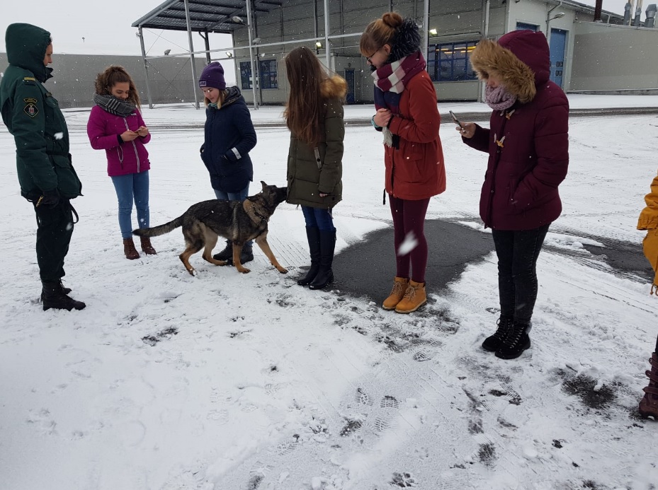 Valsts robežsardzes Kinoloģijas nodaļā uzturējās trīs ēnotāji, kuri izrādīja ieinteresētību, uzmanīgi un vērīgi sekoja līdzi izvelētās amatpersonas darbībai un pienākumu veikšanas secībai. Ar lielu aizrautību skatījās kā kinologi strādā ar dienesta suņiem: māca paklausību, veic apvidus pārmeklēšanu (priekšmetu un personu meklēšanu), narkotisko vielu meklēšanu un aizsardzības vingrinājumus.